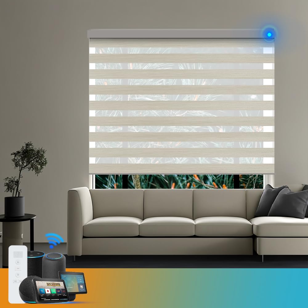 Persianas tradicionales que se han mejorado con funciones inteligentes, como la capacidad de controlarse a distancia, programarse para que se abran y cierren automáticamente y ajustarse en función de la luz solar y la temperatura.